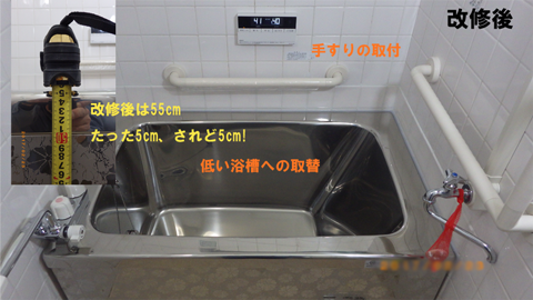 高さの低い浴槽への取替及び手すりの取付工事