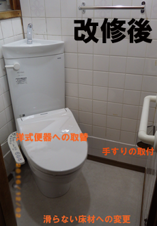 和式便座から洋式便座への取替工事及び手すりの取付工事